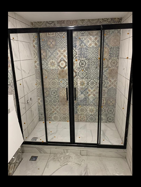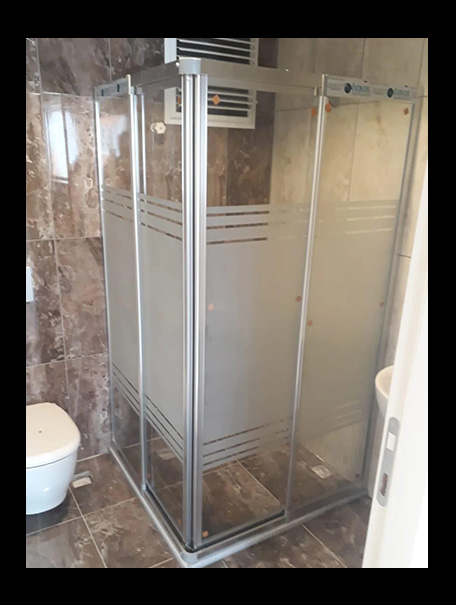 A shower enclosure is a shower area surrounded by a wall or partition, usually covered with glass or plastic panels, that delimits a bathroom or shower area. Shower enclosures are used to prevent water splashing during showering, to protect the bathroom area and to speed up the drying process after bathing.